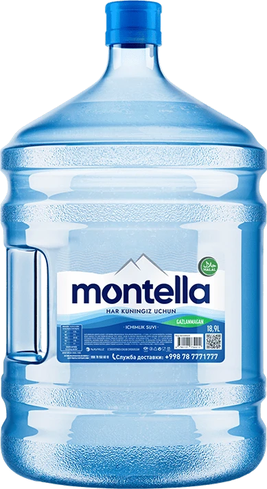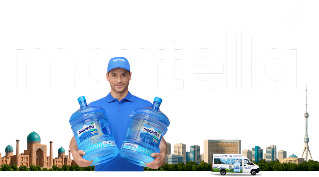 Компания Montella бесплатно доставляет 18,9 литров чистой питьевой воды до вашего дома. Эта услуга доступна в городе Ташкент и районах Кибрай, Зангиота, Келес и Чирчик.